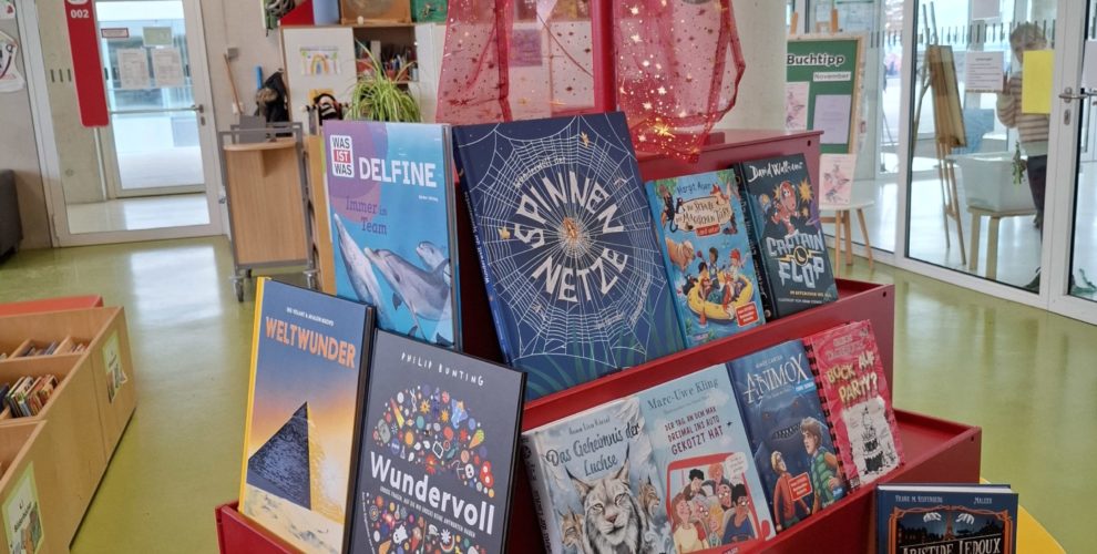Die Bücherstube Gaab kam auch dieses Jahr wieder mit einem breiten Angebot an Büchern zur OPS. Alle Klassen hatten die Möglichkeit, einen Blick in den neuesten Lesestoff zu werfen. Vielleicht landet ja das ein oder andere Buch zu Hause auf einem der Weihnachtswunschzettel? Die Schulbücherei